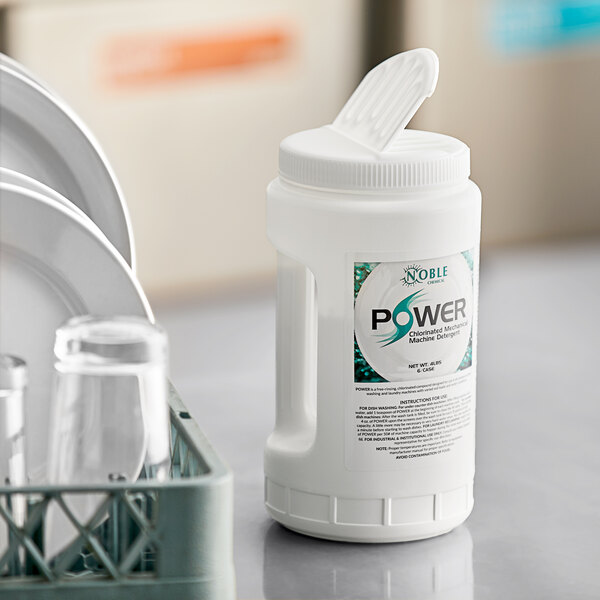 Noble Power detergent is powerful enough to clean on the first wash cycle, making it perfect for busy restaurants, cafeterias, healthcare facilities, and hotels.