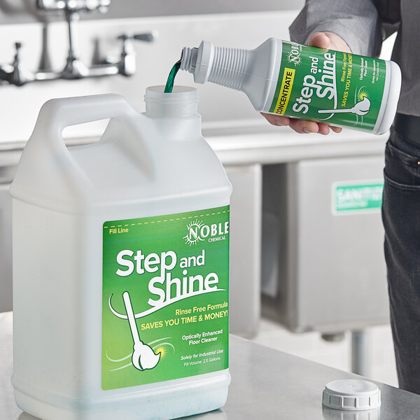 Easily clean all of the floor surfaces in your establishment with Noble Chemical's Step and Shine concentrated floor cleaner kit!
