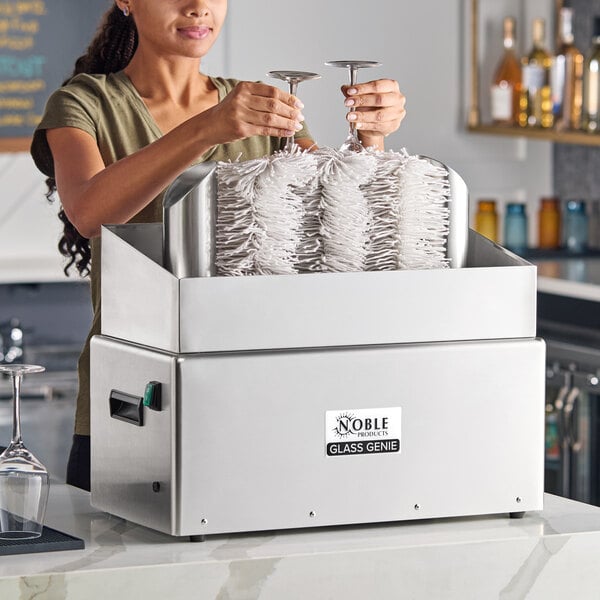 This commercial glass polisher is key to crystal clear glassware in hotels, caterers, bars, restaurants, venues, and glassware rental companies where brilliantly polished glassware is vital to maintaining reputation! The Noble Glass Genie is a great way to make sure that your glasses are always polished to a brilliant shine, and to cut down on labor costs at the same time.