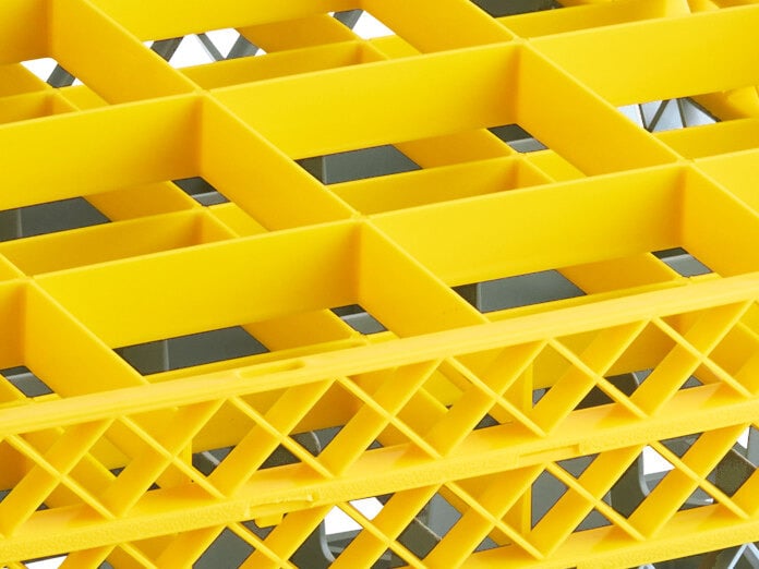 16-Compartment Gray Full-Size Glass Rack with 2 Yellow Extenders