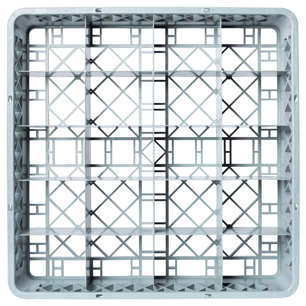 This Noble Warewashing gray full-size 20-compartment glass rack gives you the flexibility you need with the outstanding adaptability, versatility, and durability you want in today's food service establishment! When used with racks of different colors or colored extenders (sold separately), this rack makes a great addition to a color-coded warewashing operation.