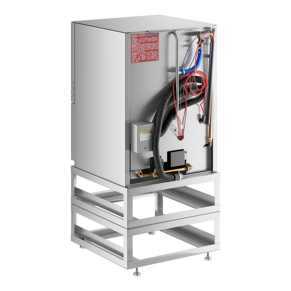 Quickly, easily, and efficiently clean full racks of used dishes with the Noble Warewashing high temperature undercounter dish machine and its compatible 18" adjustable stand. The power of this dishwasher combines with the convenience of a stand that elevates the machine and reduces strain to create an ideal asset for your busy foodservice establishment. It comes with two durable stainless steel stands that stack and install into one, providing a height of 17 11/16" with adjustable feet that can raise it to 18 11/16". Keeping your dishes and glasses clean is essential to the life of your business, and thanks to this durable unit, you can successfully clean up to 24 racks per hour with 1.1 gallons of water per rack! This ensures that you'll always be able to keep up with peak hours of service at your establishment.
